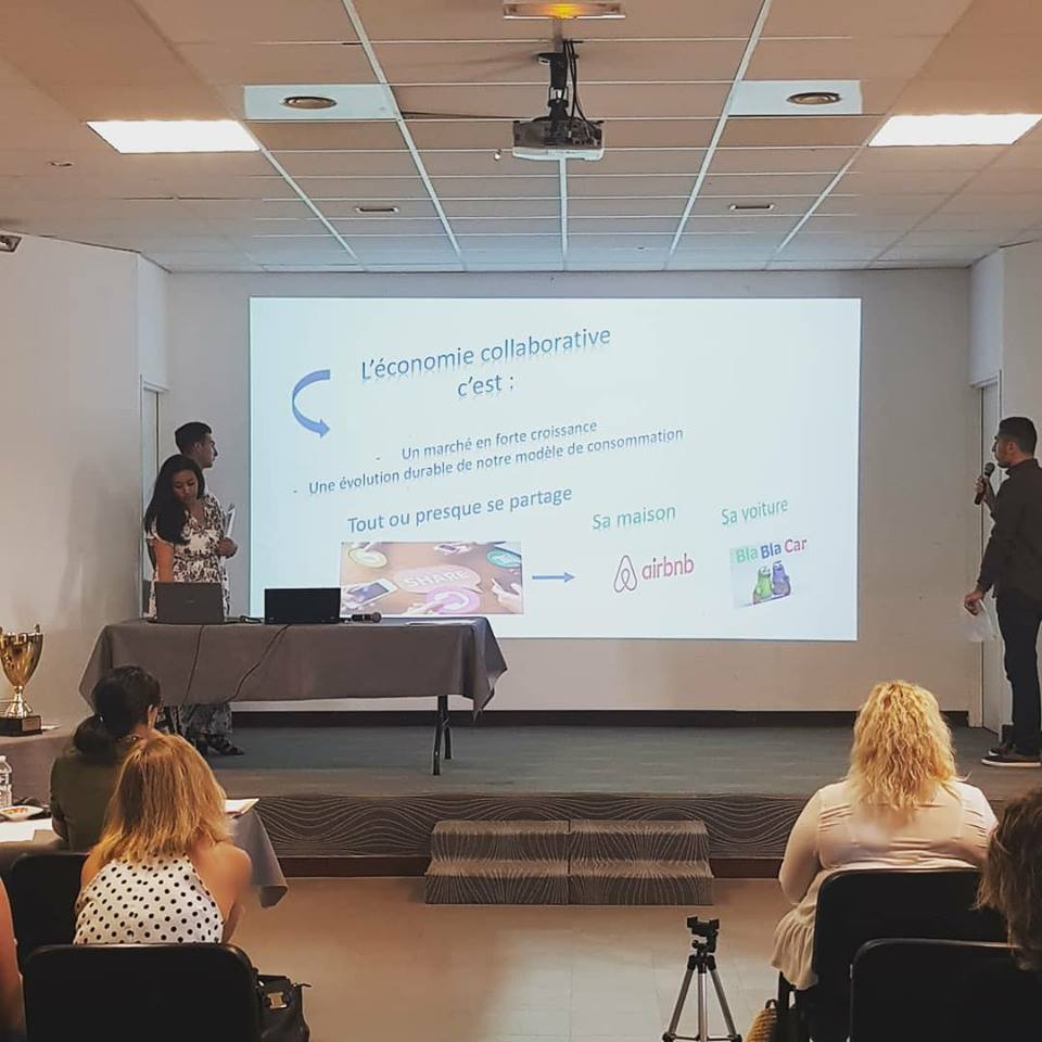 En ce jour de finale, toutes les équipes se succèdent sur scène pour présenter leur projet à un jury composé de trois professionnels. Nous comprenons très vite que nous concourons avec des équipes issues de filières Marketing : nos derniers espoirs de gagner s’évaporent dans la chaleur de juillet !!